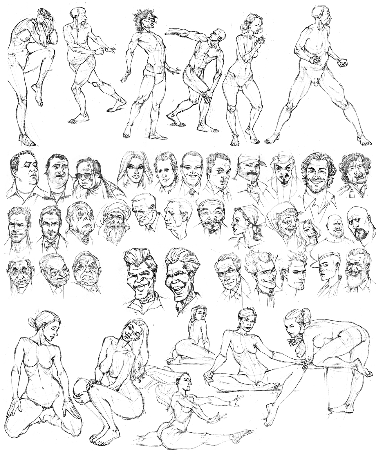 Some lunch-hour figure drawings (with some portraits of other attendees).